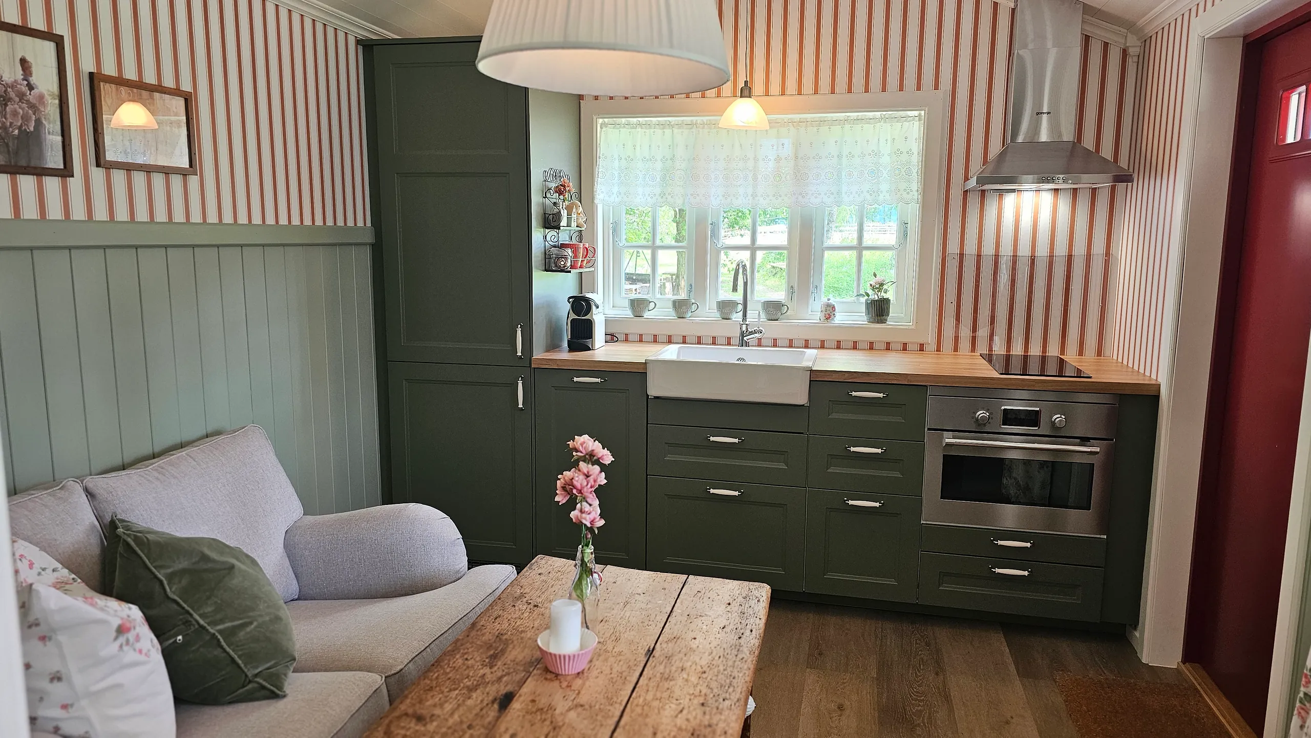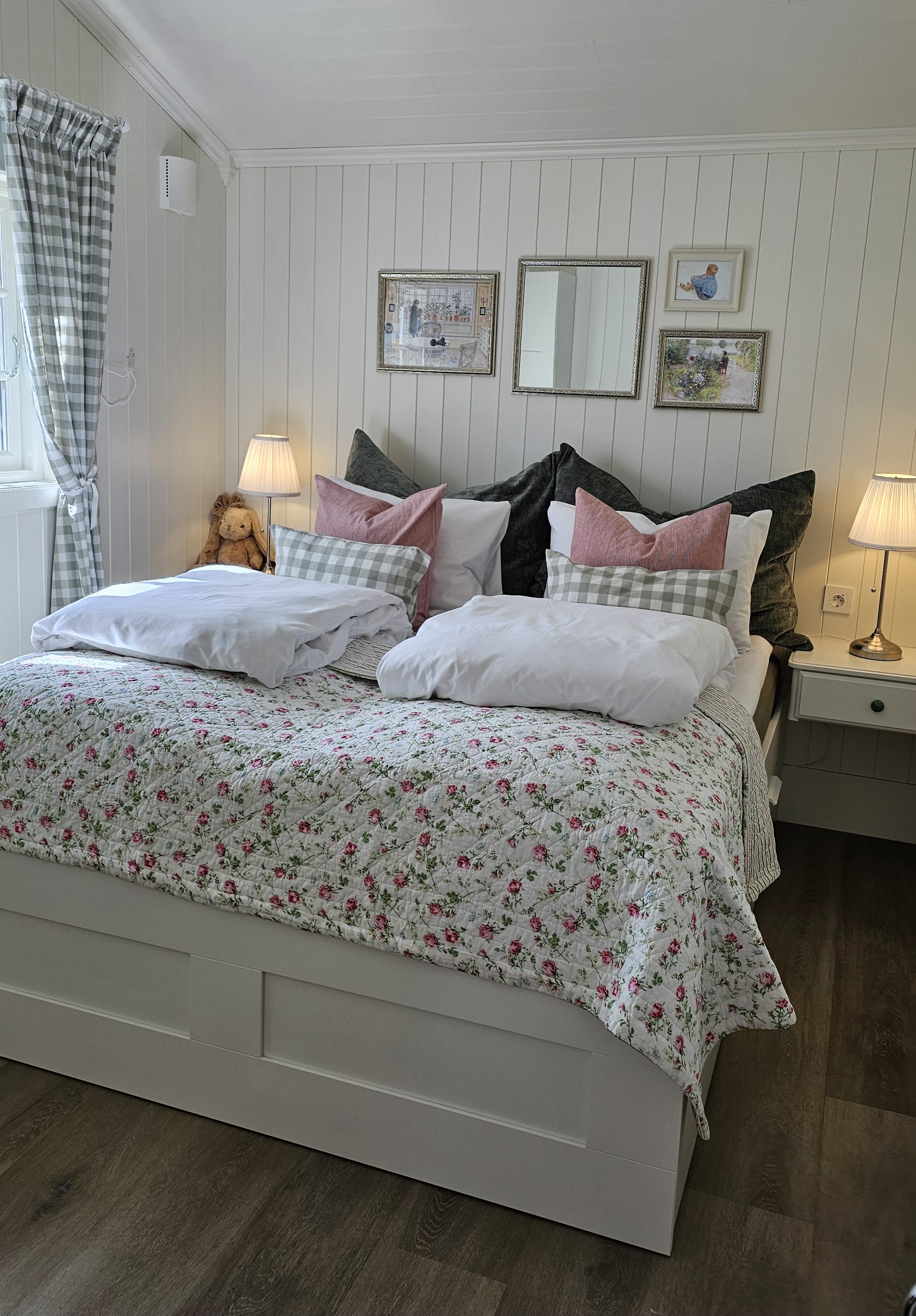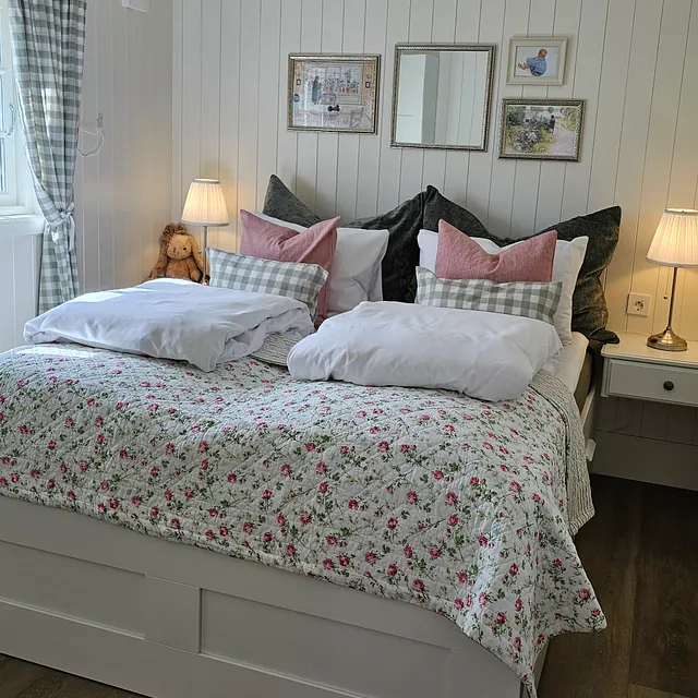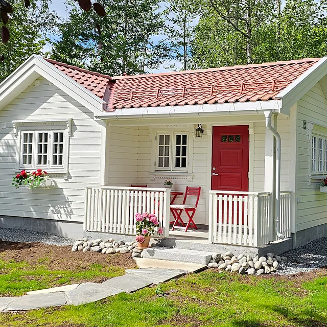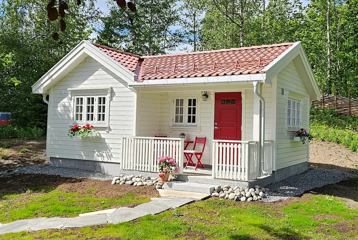 Sjekk inn i vår lille romantiske dukkestue, med smårutete vinduer og en liten terrasse perfekt for morgenkaffen i sola. Her har du et lite kjøkken, så du kan lage mat selv, eller selvfølgelig bestille en deilig middag eller frokost inne på hotellet om det er åpent. Her finner du en hyggelig sofakrok, en deilig seng og et delikat bad. Og flott utsikt over hotellhagen. Ta med deg din utkårede, en venninne eller datter, og nyt et koselig opphold i Dukkestua på Sanner.