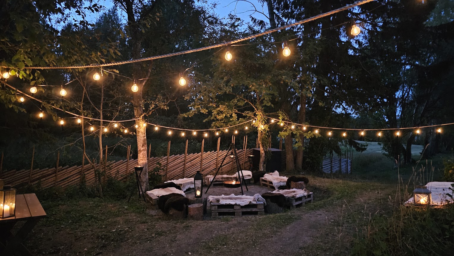 Et perfekt samlingspunkt i hagen, kanskje i forbindelse med aktiviteter eller bare et uformelt treff med gjengen. Her kan dere få enkel bevertning, f.eks grillpølser og med ønsket drikke. Med litt bakgrunnsmusikk og fyr i bålpanna, lover vi god stemning!