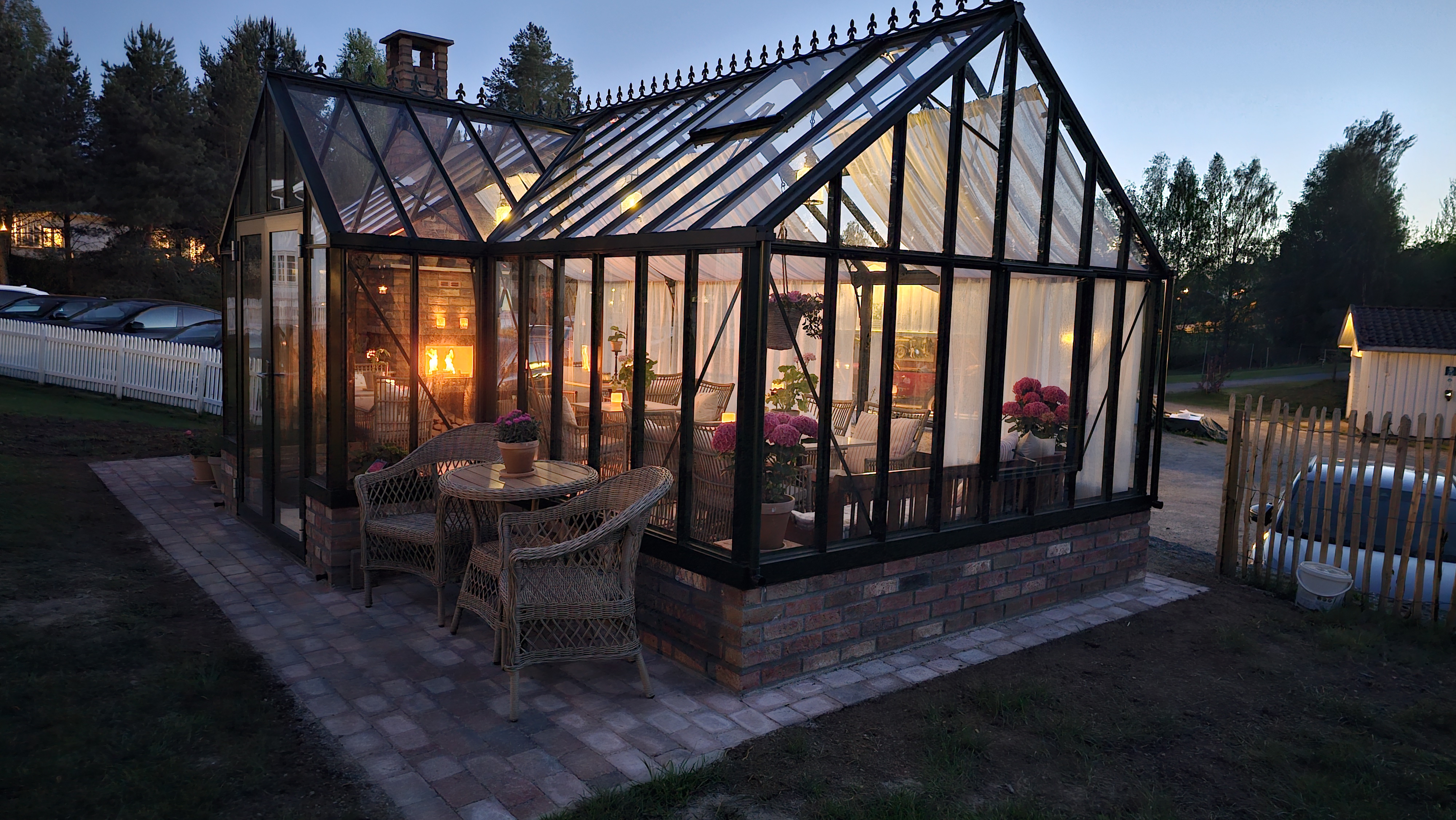 Hagen på Sanner er fylt av steder å sitte, å se, å drømme og nyte. Ta med deg en bok og en kaffe, og sett deg i Vinterhagen, eller ute i sola. Hagen er åpen hele døgnet, og du kan nyte både sol og stjernehimmel. Vi har også flere steder du kan sitte ute under tak om det regner. Vinterhagen vår kan nytes også fra tidlig vår til sen høst. Da tenner vi i peisen og skaper en magisk atmosfære.