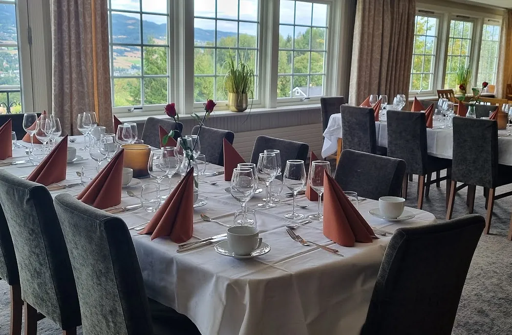 Spisestuen Bergljot egner seg godt for større selskap og arrangementer. Stuen kan romme opptil 100 personer på langbord og 130 personer på runde bord. Her finner man også frokostservering hver morgen.