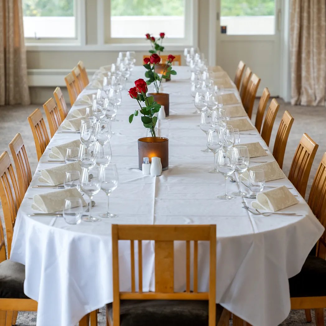 Hotellet huser både romslige spisestuer for store begivenheter, og mer intime stuer for mindre selskaper. Vi skreddersyr gjerne et opplegg etter dine ønsker og behov. Spisestuene egner seg godt for selskap som ønsker å sitte for seg selv, og kan reserveres på forhånd. Nyt et hjemmelaget, smakfullt og tradisjonsrikt måltid med kolleger og venner i historiske omgivelser.